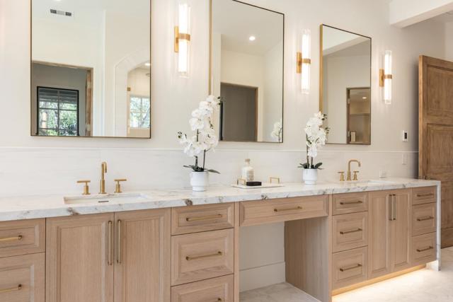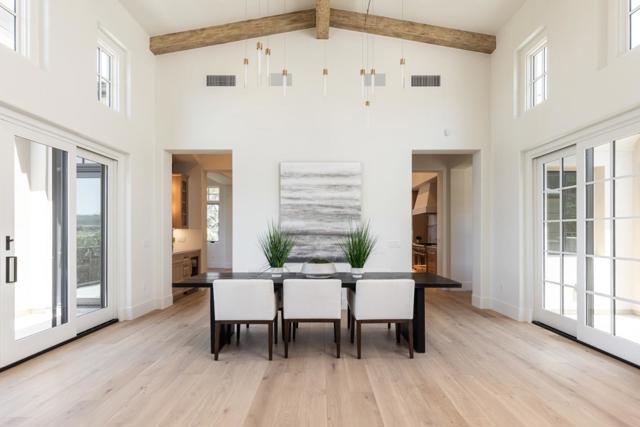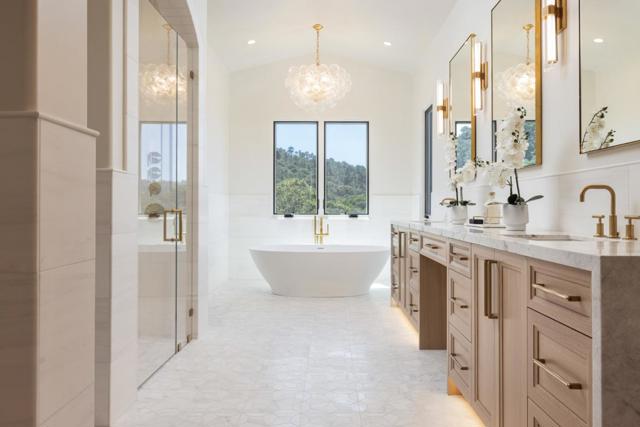 Nestled on a coveted street in Monterra, 8220 Manjares is a newly built custom home offering elevated coastal living. Set on a premier view lot surrounded by majestic oaks and sweeping bay views, this 5,800 sq ft masterpiece blends timeless sophistication with designer details. A private courtyard with an outdoor fireplace welcomes you to the home, leading to a grand, light-filled great room that opens onto a spacious balcony to capture the stunning views. The chefs kitchen features leathered quartzite countertops, Thermador appliances, and a large center island, perfect for both cooking and entertaining. The main-level primary suite is a serene retreat with its own fireplace, spa-inspired bathroom, and expansive closet. Downstairs offers three ensuite bedrooms, a family room, wine cellar, and second laundry area. Equipped with smart home technology, this property represents the finest in comfort, design, and craftsmanship. A rare opportunity for Monterra luxury living.