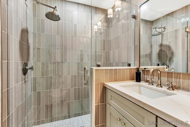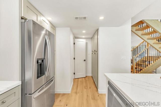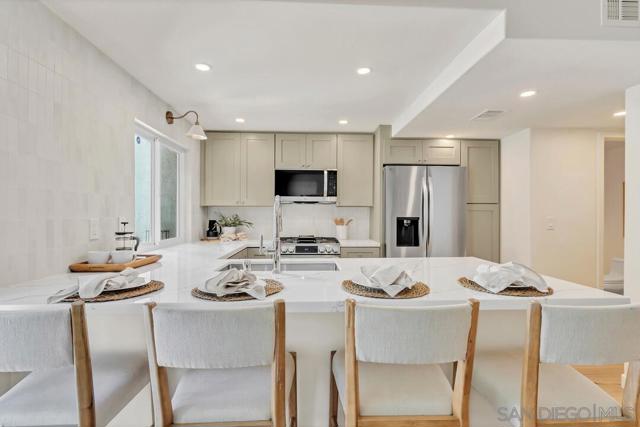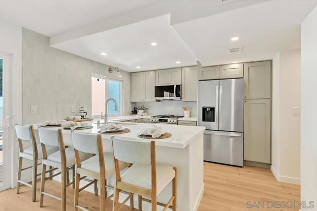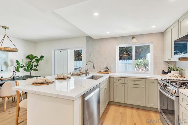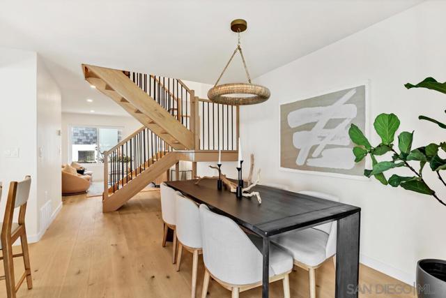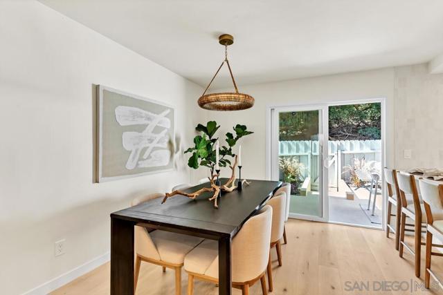 Live the coastal dream in this stunningly renovated 3-bed, 2.5-bath townhome. Tucked away west of the 5 in the desirable Del Mar Downs community, this residence is the perfect blend of modern luxury and beachside living. Step inside to a home completely transformed with high-end finishes, including White Oak engineered floors, new cabinetry, and Quartz counters. The redesigned kitchen features premium stainless-steel appliances and a gas cooktop with a griddle. Other upgrades include beautifully renovated bathrooms, updated plumbing, polished nickel hardware, and designer lighting. The primary bedroom is a serene sanctuary with a walk-in closet and a spa-like en-suite bath with dual sinks. From the secondary bedrooms, step out onto a private balcony for views of the community greenbelt and the Del Mar Racetrack. A new fireplace surround adds a stylish touch to the living room, while the private patio with a fire pit is ideal for enjoying the ocean air. The property includes a one-car garage with storage and a second assigned parking spot. Enjoy resort-style living with a community pool. You're just moments from the Del Mar Racetrack, Cedros Avenue's cultural hub, Annie’s Canyon Trail, Fletcher Cove, Tide Beach, Entertainment, Fine Dining and Nightlife to complete this coastal lifestyle.