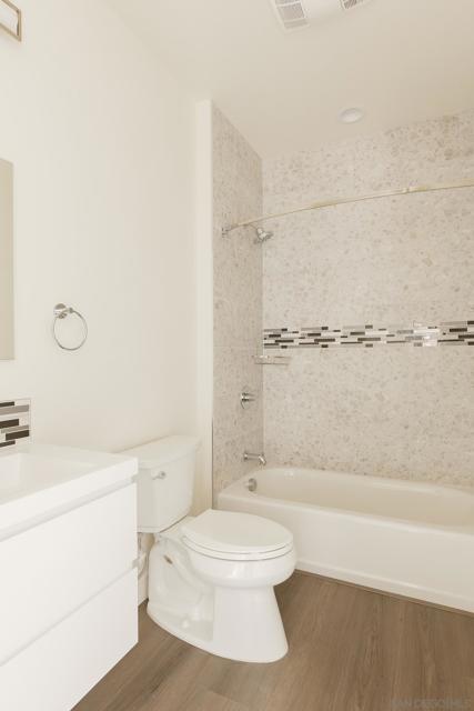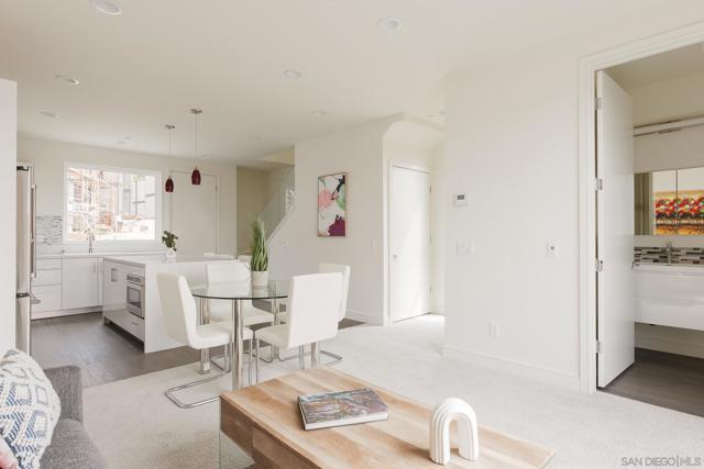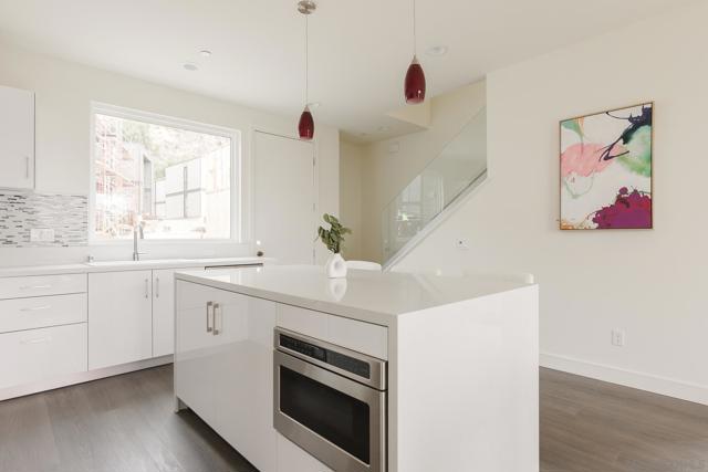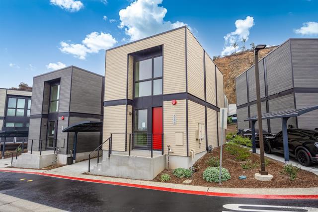 New Construction - this is one of the last units available in the development! The brand new Cantera neighborhood is located within walking distance of the Spring St trolley, Collier Park & the vibrant La Mesa Downtown Village. Enjoy stunning views, while also ensuring privacy from the hustle and bustle of city life. With a modern design, this beautiful home boasts two bedrooms and 1.5 baths, offering both comfort and convenience. The gourmet kitchen is a chef's delight, featuring top-of-the-line stainless steel Cafe appliances, sleek quartz countertops, custom cabinets (made in Germany, designed by DNA Design Group), luxury vinyl plank (LVP) flooring, soft-close drawers, and a waterfall style island, which is perfect for both cooking and entertaining. Custom tile and soaking tubs add a touch of luxury to the bathroom. The home's eco-friendly features include paid-for solar panels, allowing for energy-efficient living, and a mini-split AC/heat system that allows you to control each floor separately. Outside, each unit features a patio, a state-of-the-art glass carport (with UV protection), 2 driveway spaces & is wired for EV charging. Complex is FHA & VA approved. Photos are of a similar model unit with the same floor plan. Construction is complete, this unit is ready for moving in! The Cantera community epitomizes upscale, eco-friendly living in a uniquely designed neighborhood that blends modern luxury with natural beauty. Situated in a former rock quarry, each home within Cantera offers stunning views and privacy, yet is just a walk away from the Spring Street trolley, vibrant La Mesa Downtown Village, and Collier Park, where residents can enjoy a diverse mix of local shops, trendy cafes, and gourmet restaurants. Outdoors, private patios and native plant landscapes create personal retreats amidst natural rock formations. Cantera combines the serenity of its natural surroundings with the convenience of urban living, making it an ideal choice for those seeking a luxurious, energy-efficient home in a prime location.