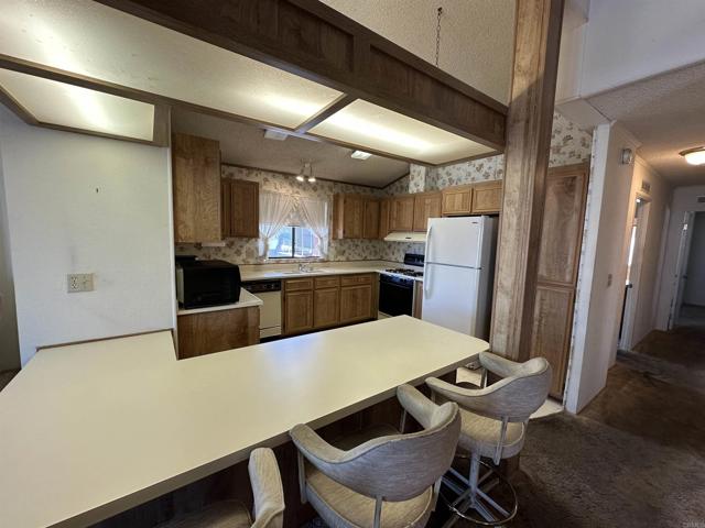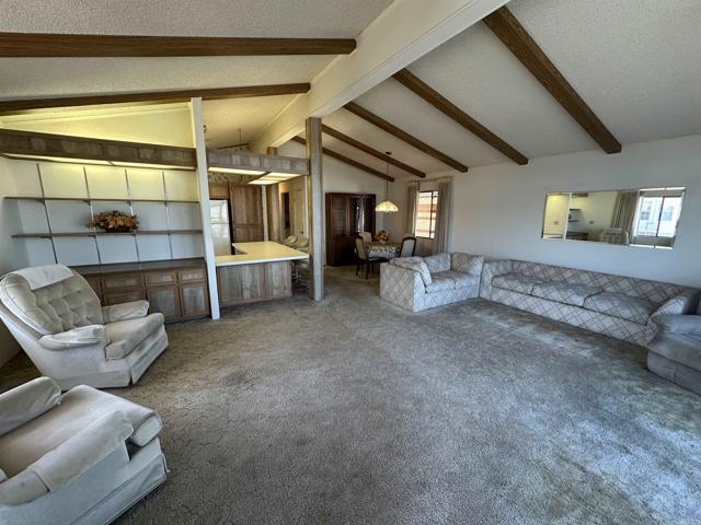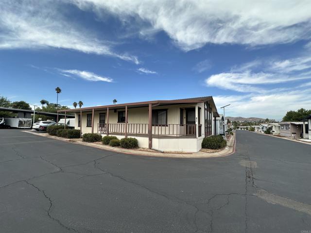 Welcome to the Meadowbrook! Santee’s Premier Senior living gated community. This one of a kind manufactured home features two bedrooms, two baths with the option to update and customize to your own taste. Additional features include vaulted ceilings with beams and a semi open floor plan, a large kitchen with lots of counter surface area, including a breakfast bar. The large laundry room has lots of storage. This is a corner lot with a great deck perfect for sitting, relaxing and enjoying coffee and afternoon beverages with views of mountains. Meadowbrook is a vibrant community with an abundance of amenities, such as pool, Jacuzzi, spa, billiards, putting green, horseshoes and a clubhouse that hosts numerous events, including potluck and bingo. Close to shopping, Dog Parks and Pickleball this community has it all! don’t miss the opportunity to make this delightful residence your new home in a friendly, active community designed for your enjoyment!
