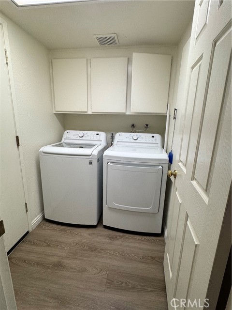 This beautifully kept 2-bedroom, 2-bathroom single-story home offers a functional layout and desirable features throughout. The open living and dining areas provide excellent flow, complemented by abundant natural light. The kitchen includes ample cabinetry and counter space, designed for both everyday living and entertaining. A dedicated indoor laundry area with washer and dryer adds convenience. The primary suite features an attached bathroom and walk-in closet while the secondary bedroom is well-sized for versatility. Additional highlights include a two-car garage, low-maintenance landscaping, and a private backyard with plenty of room to enjoy. Situated within the well-maintained gated community of Laurel Park, this home offers close proximity to local shopping and parks.