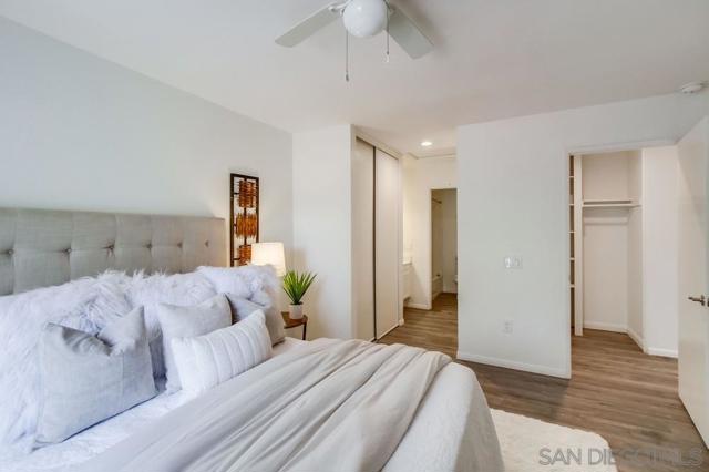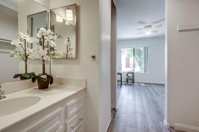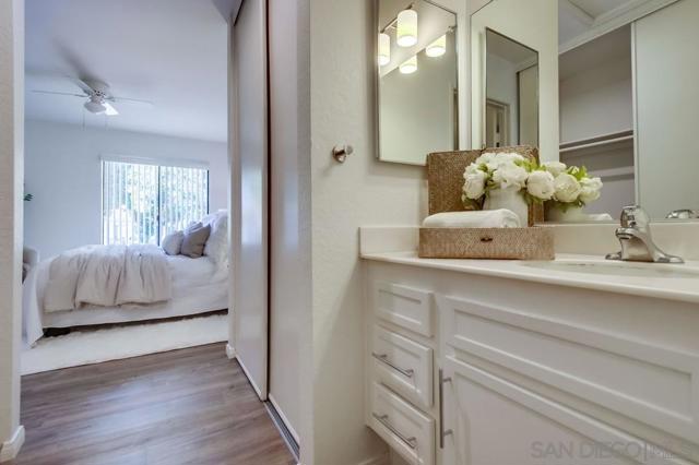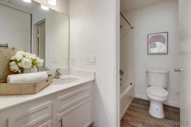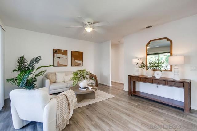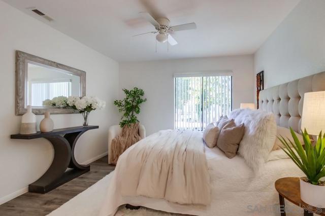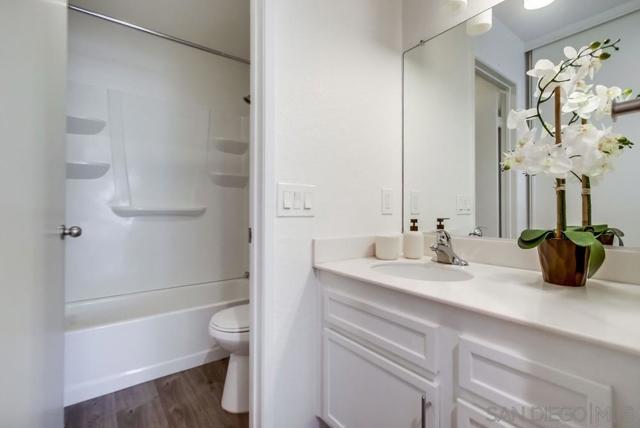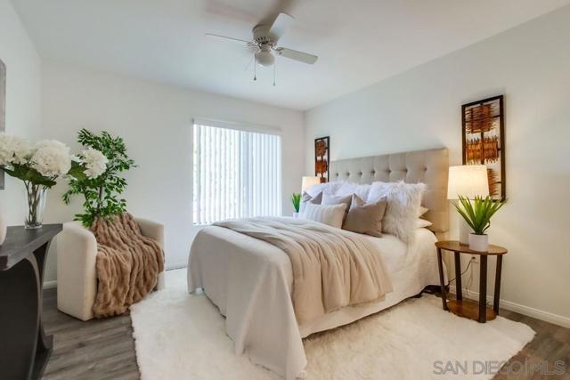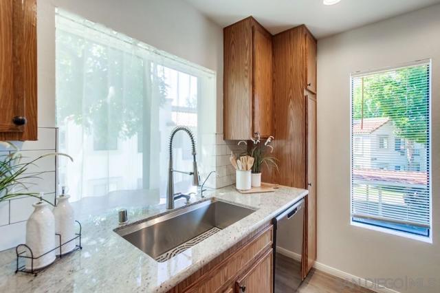 Motivated Sellers! Centrally located and move-in ready, this 2 bed, 2 bath upper-level condo offers 866 sq ft of comfortable living in the highly desirable Mira Mesa community. The kitchen features granite countertops, a subway tile backsplash, modern cabinetry, and a 4-burner gas range. A covered balcony with a storage closet includes full-size washer/dryer hook-ups for added convenience. Enjoy a quiet, well-maintained complex with a community pool and spa, assigned covered parking just steps from your door, and plenty of guest parking. Walk to nearby parks, schools, and shopping centers—it's a practical and convenient location. Ideal for first-time buyers, investors, or anyone seeking low-maintenance living in a central San Diego neighborhood.