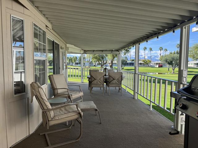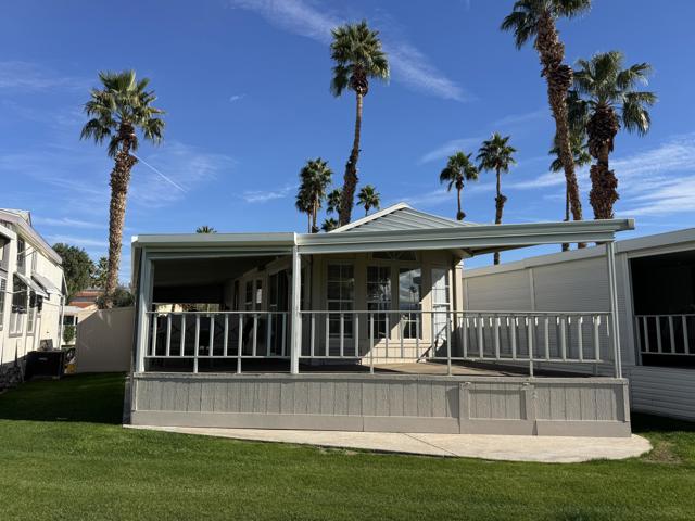 Highly Motivated Seller!This turnkey park model is ideally located on the 2nd hole beside the green, offering stunning views of the lake and the San Jacinto Mountains. Enjoy breathtaking sunsets from the spacious L-shaped deck, complete with roll-down automatic shutters for added comfort and convenience. New deck flooring was installed in summer 2025, enhancing both style and durability.Situated within the highly desirable Rancho Casa Blanca (RCB) community, this beautifully landscaped 80-acre resort-style property features 801 individual park model homes and RV sites. Residents enjoy access to two large clubhouses serving as vibrant social hubs, along with four satellite buildings offering laundry facilities, mailboxes, heated pools, and relaxing spas.Ownership includes FREE GOLF on the 18-hole par-3 golf course, a 9-hole putting course, multiple practice chipping and putting greens, six heated pools and spas, tennis and pickleball courts, shuffleboard, horseshoe pits, a fully equipped fitness center, and over 60 clubs and classes.For added peace of mind, the community is guard-gated with regular security patrols. Whether you prefer an active lifestyle or peaceful relaxation, Rancho Casa Blanca offers the best of both worlds--made even easier by golf cart living. Occupancy is limited to 270 days per calendar year (not consecutive).