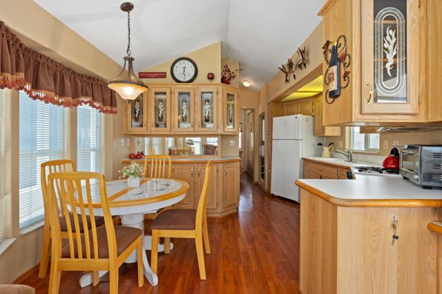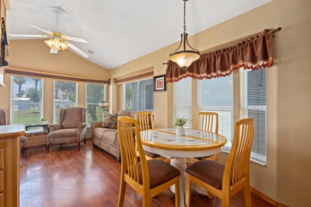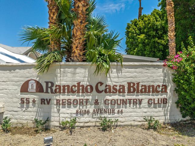PRICE REDUCED! MOTIVATED SELLERS! SPOTLESS and ready for its new owners! Welcome to your perfect desert getaway in the heart of the Rancho Casa Blanca 55+ Resort Community! This 2001 park model is located in a fantastic spot on the 14th green, offering AMAZING views of the golf course, the lake and those gorgeous northern mountains from your ground-level patio that takes full advantage of the extra lot space! Ideal for relaxing by the fire pit, entertaining with a card game, or soaking up the sunshine!Inside, this home features one of the more favorable layouts, with plenty of living, dining, and kitchen space... all in a bright and welcoming setting. The laminate wood floors add warmth and style, plus the home comes fully furnished and is move-in ready! Outside, you'll find a large shed for additional storage, perfect for golf gear, bikes, or seasonal extras.RCB comes alive during season with FUN-filled activities, social events, and a strong sense of community. As an owner, you'll enjoy FREE GOLF, multiple pools and spas, two clubhouses, satellite buildings with laundry, and lush, landscaped grounds across 80 gated acres.Whether you're looking for a winter retreat or a seasonal rental opportunity (Yes, seasonal rentals do fantastic in this community!), this home checks all the boxes! Did I mention- you own the land! Schedule your viewing today! Golf Cart can be negotiated!