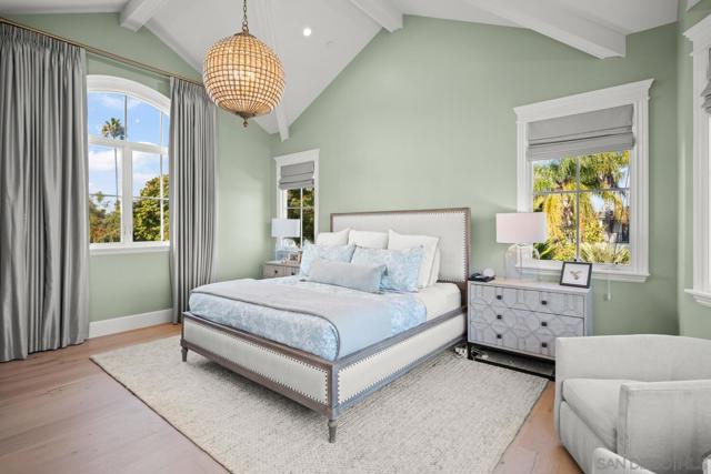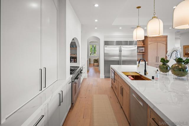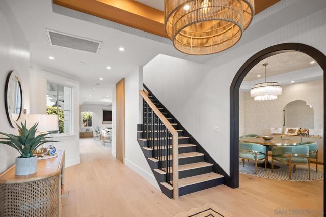 Perfectly situated on a generous 7,500+sq.ft. lot, this stunning residence blends timeless elegance with thoughtful modern design. The main home offers 4 en suite bedrooms plus a den, complemented by a beautifully appointed 1-bedroom casita featuring its own living room and wet bar — ideal for guests or extended family. Inside, new white oak floors flow throughout the home, setting the stage for the newly reimagined first floor. The formal dining room exudes sophistication with designer finishes, while the butler’s pantry is a host’s dream — complete with a wine fridge, refrigerator drawers, ice maker and filtered water bottle refill station. The kitchen has been expertly reconfigured with both beauty and function in mind, offering a seamless flow for cooking and entertaining. Everyday living is made effortless with owned solar panels and a convenient “drop zone” just off the garage — perfect for organizing backpacks, shoes, and sporting gear. Outside, the spacious yard invites gatherings, alfresco dining, or simply relaxing under the Coronado sunshine. A rare opportunity to own a thoughtfully redesigned home in one of Coronado’s most sought-after neighborhoods — Country Club Estates.