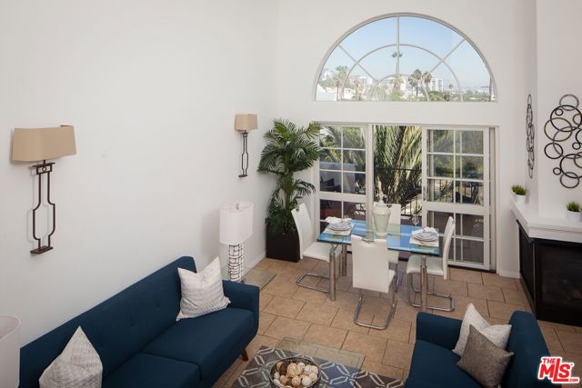 Sophisticated Penthouse Living at The Desmond West Hollywood. Experience elevated living in this rare two-story penthouse at the iconic Desmond, one of the most coveted addresses in the Norma Triangle. Bathed in natural light through a dramatic arched picture window, the residence blends timeless architecture with modern upgrades. The main level showcases open-concept living and dining areas with 20+ft ceiling and a cozy fireplace that flow seamlessly to a generous balcony featuring views of the Design Center and DTLA. The chef's kitchen is updated with sleek Caesarstone countertops, marble backsplash, and stainless-steel appliances, plus in-unit laundry and a versatile en-suite guest bedroom with walk-in closet. Upstairs, the private primary retreat impresses with its own balcony, spacious walk-in closet, and en-suite bath. Additional highlights include two side-by-side gated parking spaces, secure entry, tons of secure guest parking, and access to The Desmond's lush courtyard with tranquil fountains. Spacious and thoughtfully designed, it has all the features that make condo living exceptional and is perfectly positioned just steps from West Hollywood's premier dining, boutiques, and nightlife. This penthouse offers an ideal mix of style, comfort, and convenience -- a perfect place to call home!