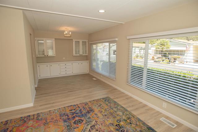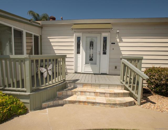 Experience easy, comfortable living in Champagne Village, a gated 55+ community connected to Lawrence Welk Resort. This updated home is move-in ready and built for simple, low-maintenance living. What stands out right away: Front porch with a beautiful rose garden, Bright interior with new luxury vinyl plank flooring. Clean, modern finishes throughout. Key features: 2 bedrooms and 2 remodeled bathrooms. Spacious primary suite with washer and dryer in the closet, New luxury vinyl plank flooring throughout, Electric stove with double oven, Whole house fan for efficient cooling, Outside, you get a yard with grass for the grandkids kids to play, plus two detached storage units with built-in shelving. Easy to maintain and easy to lock up when you travel. Community perks: Guard-gated entry for added security, Clubhouse with regular social events, Pool, tennis, and pickleball, Access to resort amenities next door, Location: Quick freeway access, Easy drive to San Diego and Riverside, If you want a home that feels clean, updated, and ready from day one, this one delivers