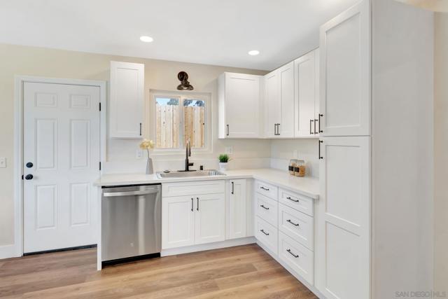 Tucked away in a peaceful Spring Valley neighborhood, this beautifully remodeled 2-bedroom home offers both privacy and charm. Perched on a hill with lovely views, the home features new luxury vinyl plank flooring, dual-pane windows, and stylish modern finishes throughout. The spacious kitchen is impressive with sleek cabinetry, quartz countertops, and plenty of room to cook and gather. The bathroom feels luxurious, and both bedrooms are light and thoughtfully updated. Enjoy outdoor living on the two decks and large patio areas—perfect for entertaining or relaxing. Additional highlights include a brand-new roof, a large one-car garage, and plenty of driveway parking. This home is move-in ready and beautifully finished.