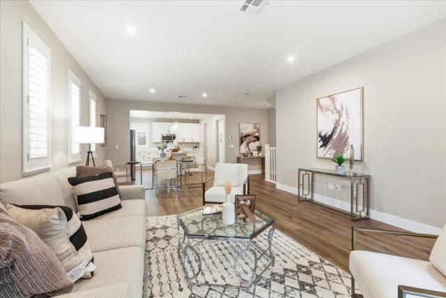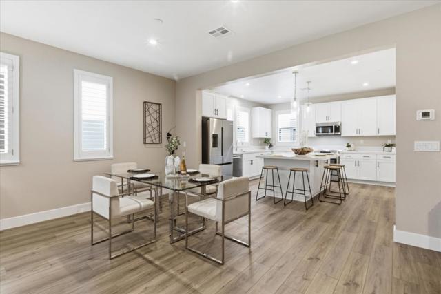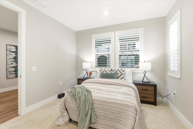 Welcome to this new construction, Brookfield townhome. Seller upgraded to make their primary residence but was never able to occupy the home due to new job opportunity. Now is your chance to make this beautiful home yours as it is move-in ready! Seller upgrades include designer two-tone paint throughout, upgraded carpets, LVP on all stairs, shutters with upper and lower controls, fabric vertical panel shade over the sliding glass door, roman shade on the front door, wired ethernet in all bedrooms, new Bosch stainless steel refrig, new LG washer & dryer, ceiling fan in the primary bedroom, epoxy garage floor with slat panel and cabinets installed in the garage, and EV charger. Brookfield features include double pane windows, seller-owned solar panels, all electric home, smoke detectors & fire sprinklers throughout. The home is warmed and cooled by central heating/AC. Save money on energy costs with electric heat pump water heater, high-efficiency faucets, shower heads and toilets. Explore downtown Morgan Hill filled with local boutiques, cafes, and various dining establishments. Shop the large retail stores like Target, Home Depot, Walmart, and Dick's Sporting Goods. Enjoy the Outdoor Sports Center, Aquatic Center, and many local parks and trails.