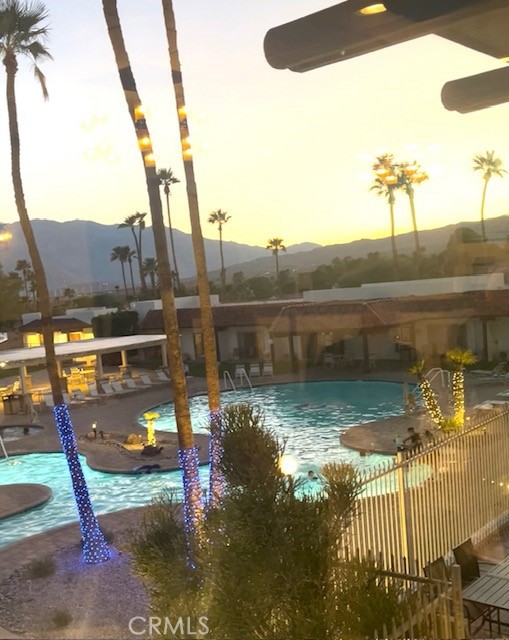 Located in the beautiful Mission Lakes Country Club, 2 suite size bedrooms, 2 bathrooms , nice size living area with fireplace, enjoy the back yard with covered back patio, beautiful riviera style salt water pools, jacuzzi , tennis courts,manicure golf course overlooking the mountains and restaurants.