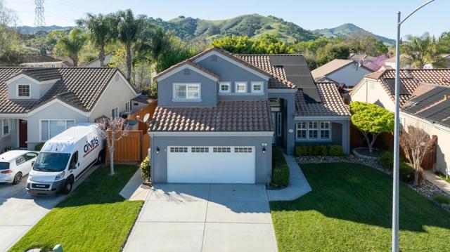 Discover the charm of Morgan Hill in the sought-out Oak Creek Park Neighborhood! This spacious 2,254 sq ft home, thoughtfully designed to accommodate modern living. This residence features 4 bedrooms and 2.5 bathrooms, including a large primary suite complete with a walk-in closet and oversized bathroom. The updated kitchen offers a gas cooktop, quartz countertops, double ovens, and stainless-steel appliances. Adjacent, the dining area provides versatile options with a breakfast bar and eat-in kitchen. The separate family room is perfect for gatherings, complemented by a cozy fireplace. New wood flooring downstairs brightens the home even more with all the natural light this home has to offer. Bathrooms boast double sinks, a shower and tub, and a primary suite with a stall shower and jetted tub. Amenities such as a vaulted ceiling and high ceiling enhance the spacious feel. Practical features like central AC, ceiling fans, plantation shutters and owned solar power improve comfort and efficiency. Conveniently, the inside laundry area offers gas and electricity hookups. When not in the home, enjoy the 3-acre park at the end of the court with playgrounds, tennis court, basketball court, horseshoes and picnic area. No HOA fees in this neighborhood! Must see to appreciate!