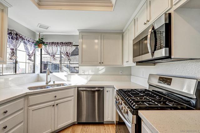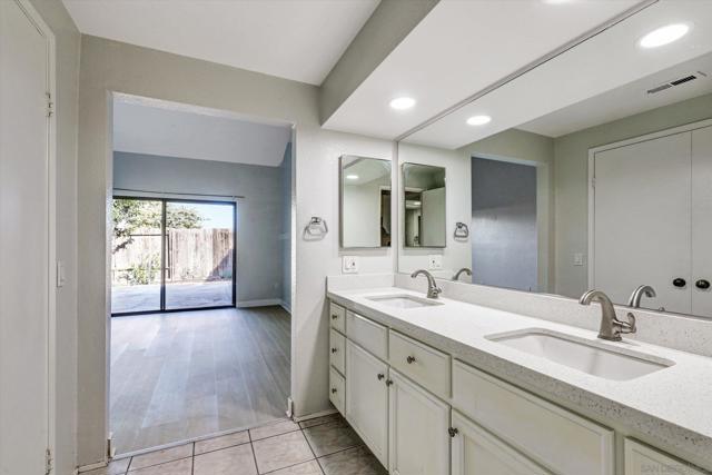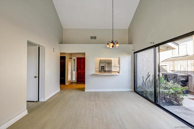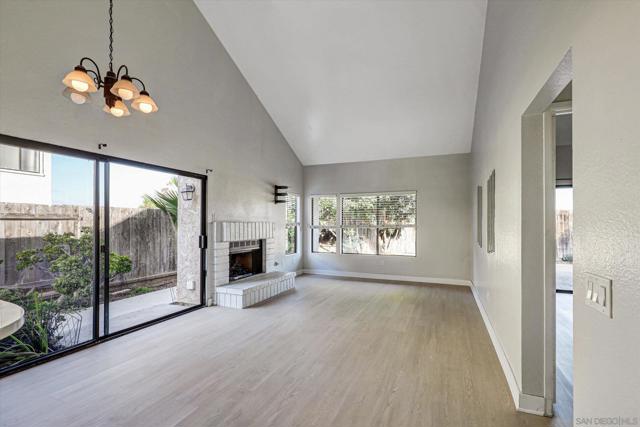 RARE FIND! Charming Feather Ridge single-story duplex that feels and shows like a single-family home. Features include new vinyl flooring, central air conditioning, and a cathedral ceiling in the living room with a cozy fireplace. Enjoy a private backyard and a spacious master bedroom with a sliding door opening to the back patio, walk-in closet, and double sinks in the bathroom. This home offers a great floor plan with a large living room, fireplace, and generous master suite. The property also includes a big backyard and side yard, plus a 2-car garage. You own and maintain your own lot. Recently remodeled from top to bottom with style and no expense spared. Located in the award-winning Poway Unified School District, this desirable neighborhood is close to shopping, the library, restaurants, and many other amenities. The fire station, police station, and Mt. Carmel High School are all within walking distance.