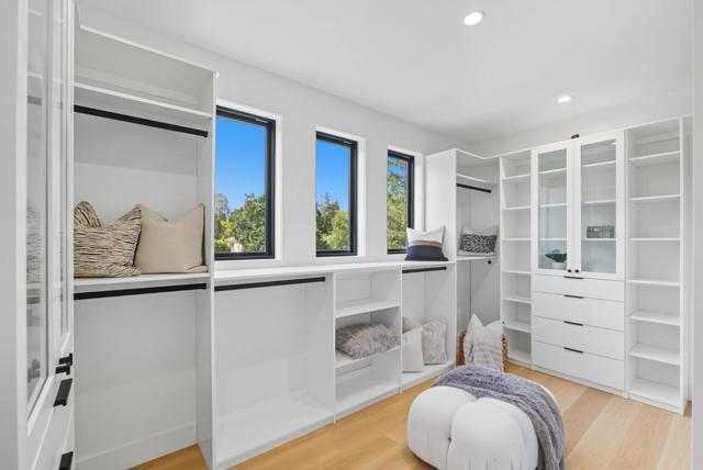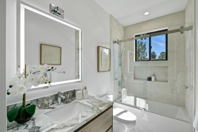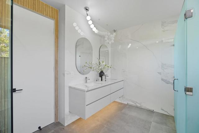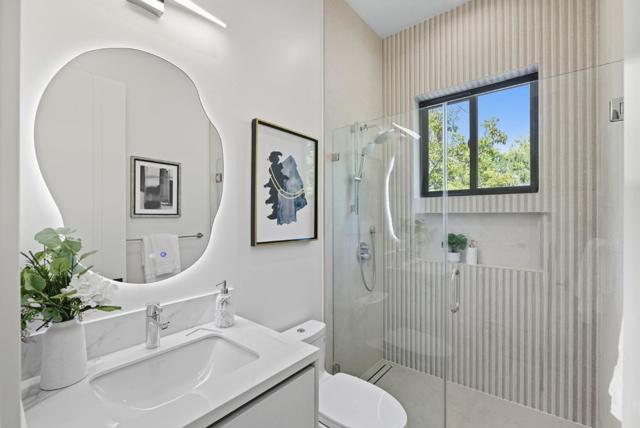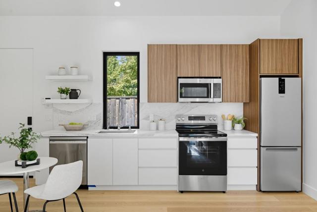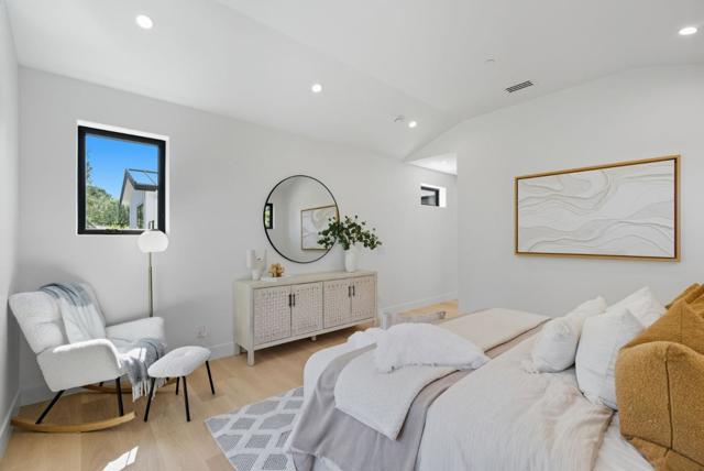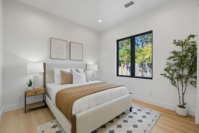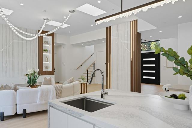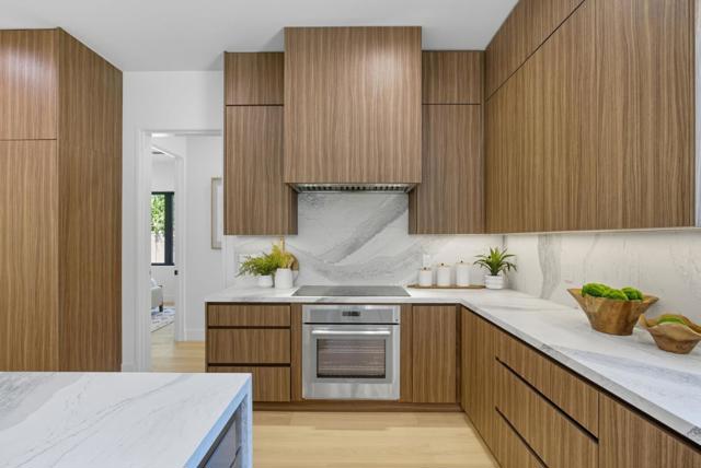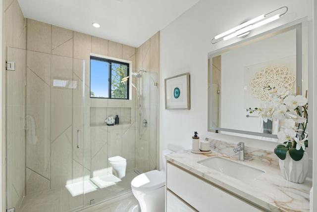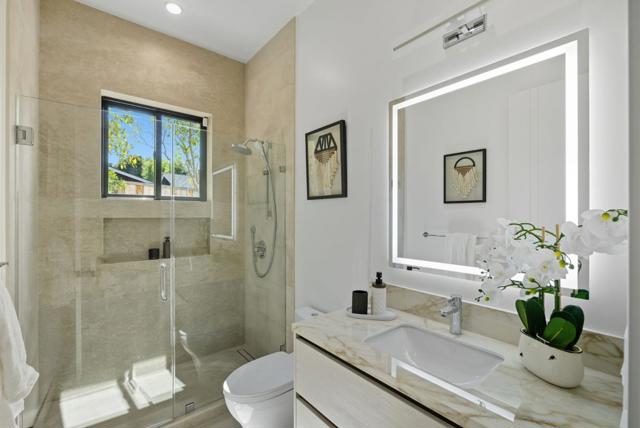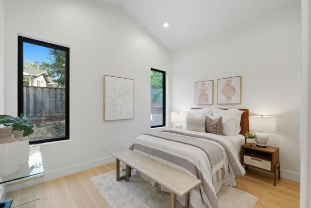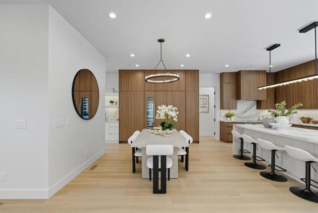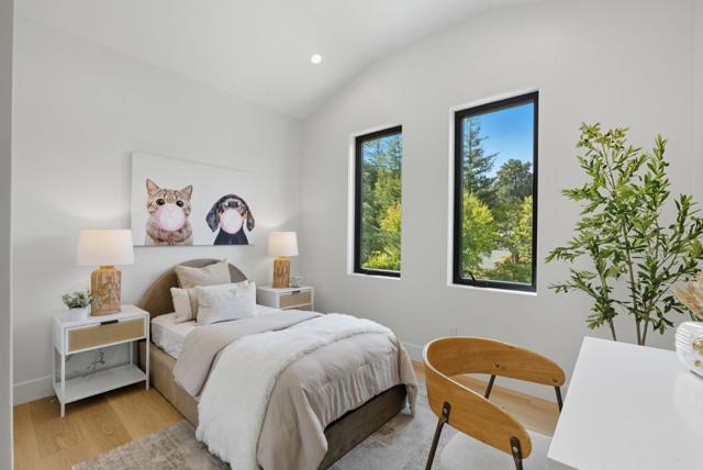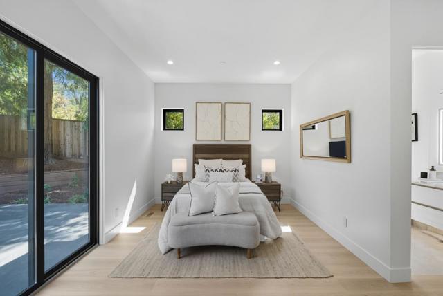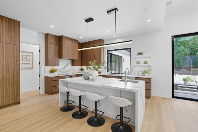 Newly completed in Sharon Heights, this modern farmhouse blends timeless board-and-batten siding and stone cladding with interiors of extraordinary sophistication. Lofty ceilings, dramatic porcelain and quartz slab installations, and sculptural statement lighting along with white oak floors throughout. The flexible floor plan spans two levels with 6 bedrooms, 6.5 baths, and a dedicated office. A fully integrated 2-bedroom, 2-bath ADU is accessible from the main home or through a private entrance, offering versatility for extended family or rental income. Spacious formal living room, open formal dining room, plus stunning kitchen and family room. Main-level bedroom suite (in addition to the ADU), plus upstairs primary suite, additional suite, and bedroom and bath. Sustainability is integral with solar power, all-electric systems, and a standing seam metal roof. Excellent Las Lomitas schools and minutes from Venture Capital centers and Stanford University.