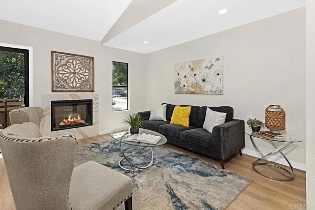Gorgeous fully remodeled 2-bedroom, 1-bath condo in the heart of Scripps Ranch, offering modern finishes, resort-style amenities, and a highly convenient location. This upper-level home features an open-concept layout with all-new flooring, fresh paint, new doors, and updated cabinetry in top designer colors. The stunning kitchen is equipped with stainless steel appliances, quartz countertops, and a full quartz backsplash, flowing seamlessly into the living and dining areas with vaulted ceilings that create a spacious and airy feel. The spa-like bathroom showcases quartz countertops and designer tile accents. Enjoy a private balcony surrounded by lush tree-lined views—perfect for relaxing outdoors. The well-maintained community offers multiple sparkling pools, beautifully landscaped grounds, and a peaceful setting. Located just minutes from the I-15 freeway, shopping, dining, and outdoor recreation, this home delivers both style and convenience in one of San Diego’s most desirable neighborhoods. A true must-see!